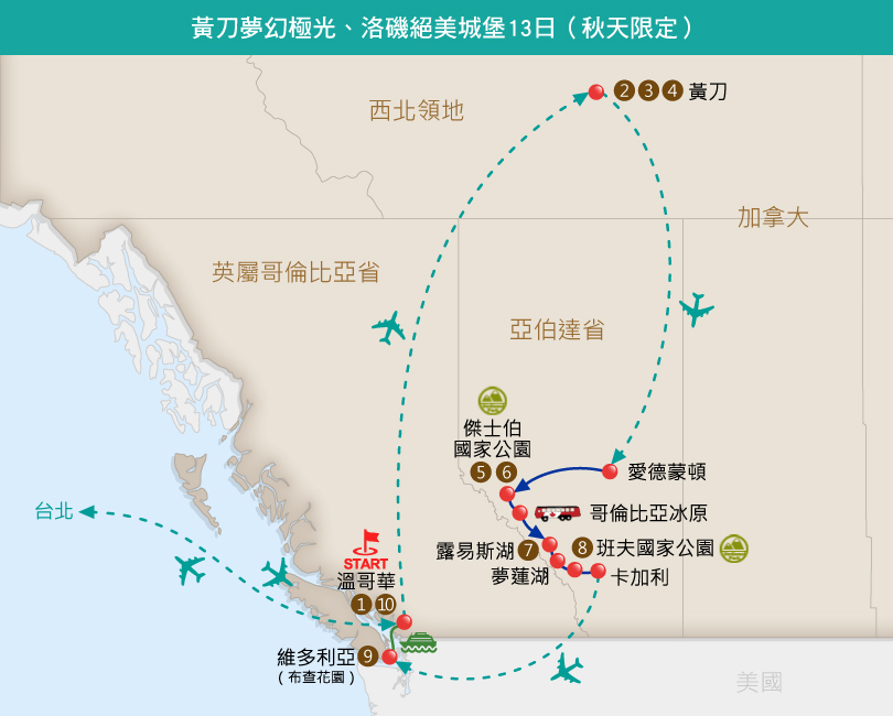 黃刀夢幻極光12日(保證入住露易斯湖城堡2晚)