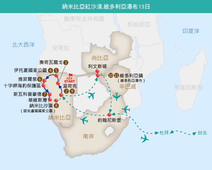 從亞熱帶的福爾摩沙搭機飛阿聯酋~杜拜Dubai轉機往非洲,展開期待已久的「瀑布、沙漠、海洋與紅人部落」之旅!