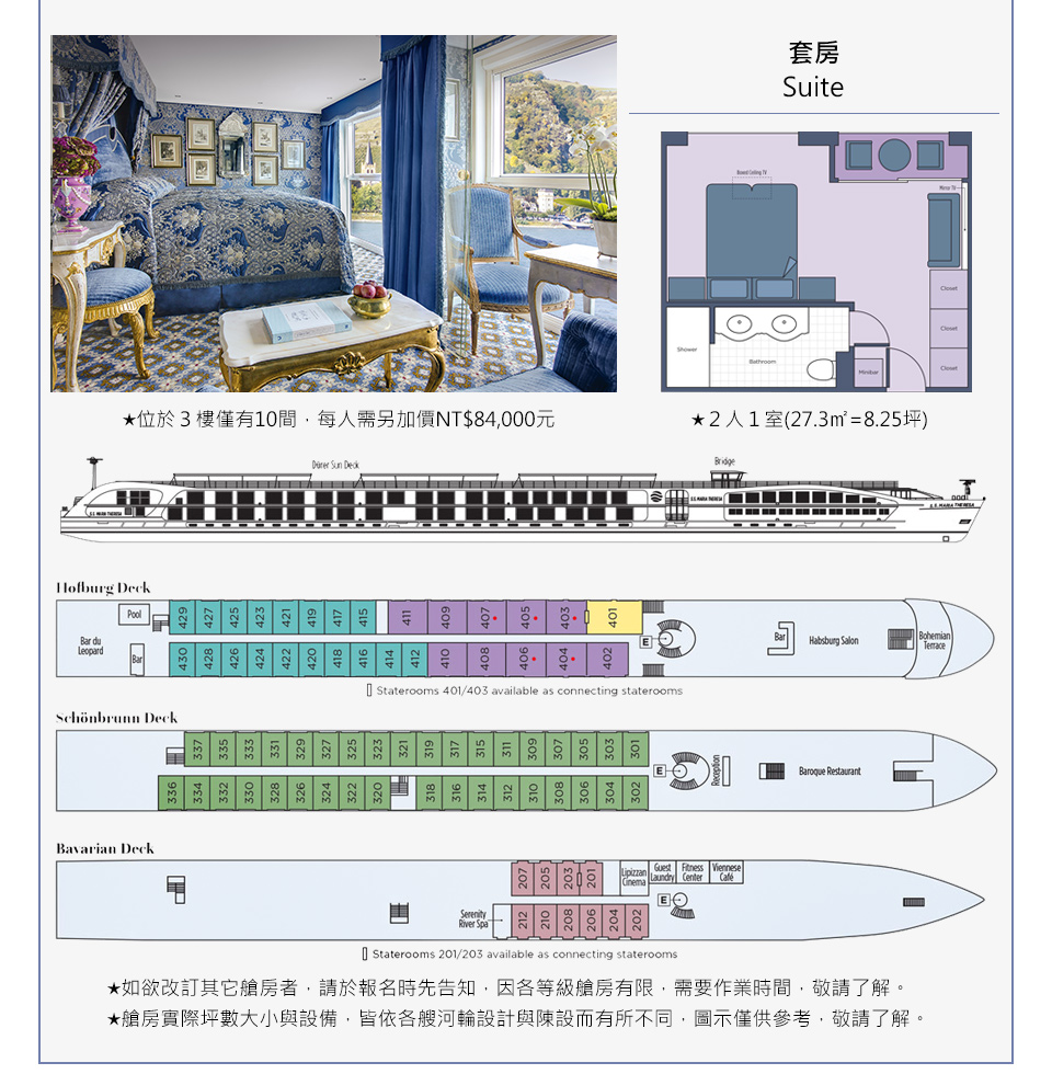 5. 河輪:(請按此下載【S.S. Maria Theresa】河輪艙房平面圖)