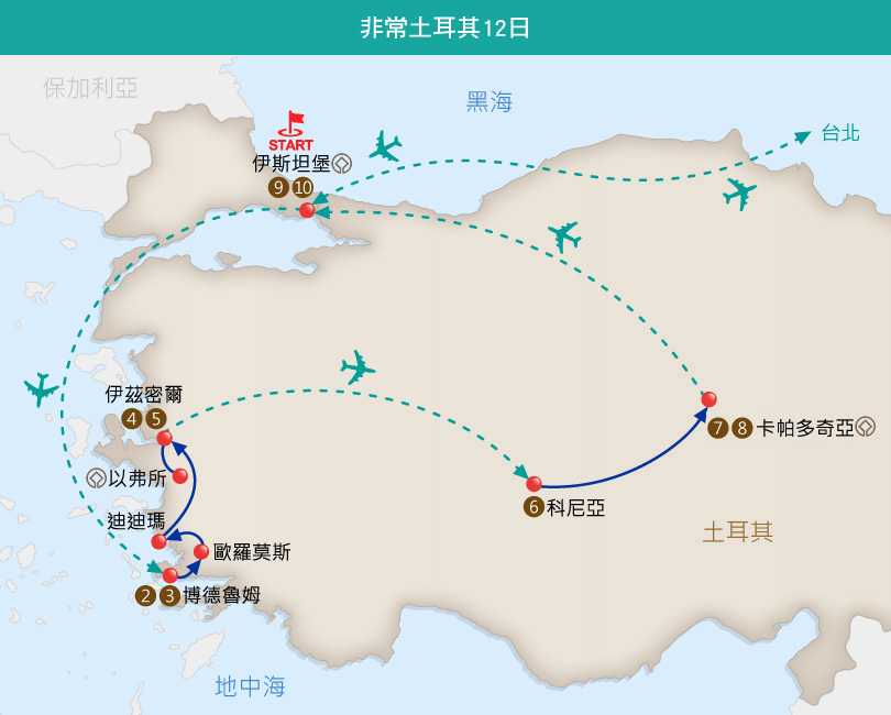 充滿濃濃異國風情的土耳其,神秘、多彩、奢華、富麗、奇異詭譎的地景,從伊斯坦堡出發,沿著愛琴海海岸一路北上,探索土耳其豐富的歷史和壯麗的景色,遊覽其令人驚嘆的考古遺址。