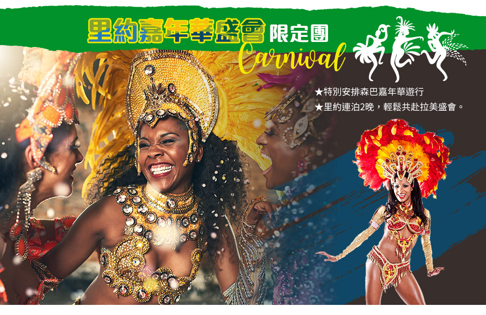 重頭戲森巴館觀賞一年一度嘉年華會最精彩的★「嘉年華遊行森巴隊伍遊行」將於今晚登場!晚餐後,將會專車前往嘉年會的露天場館Sambódromo da Marquês de Sapucaí。並依照座位區域依序進場,晚間21:00將會施放代表開場的煙火,隨即由第一隊伍進場,展開跨夜精彩的遊行。每一所森巴學校都會派出舞姿精湛的森巴女郎領軍,上千位的森巴舞者更是使出渾身解數、盡情扭腰擺臀,令我們也都隨之起舞。而各式各樣的花車,更是琳瑯滿目、目不暇給。精彩的夜晚~將持續到隔天凌晨。