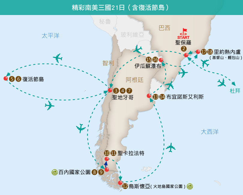 而這趟旅程的態度,就是飛往南美三國:(1)巴西、(2)智利、(3)阿根廷。