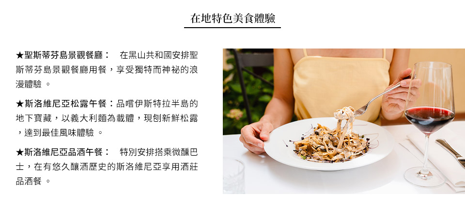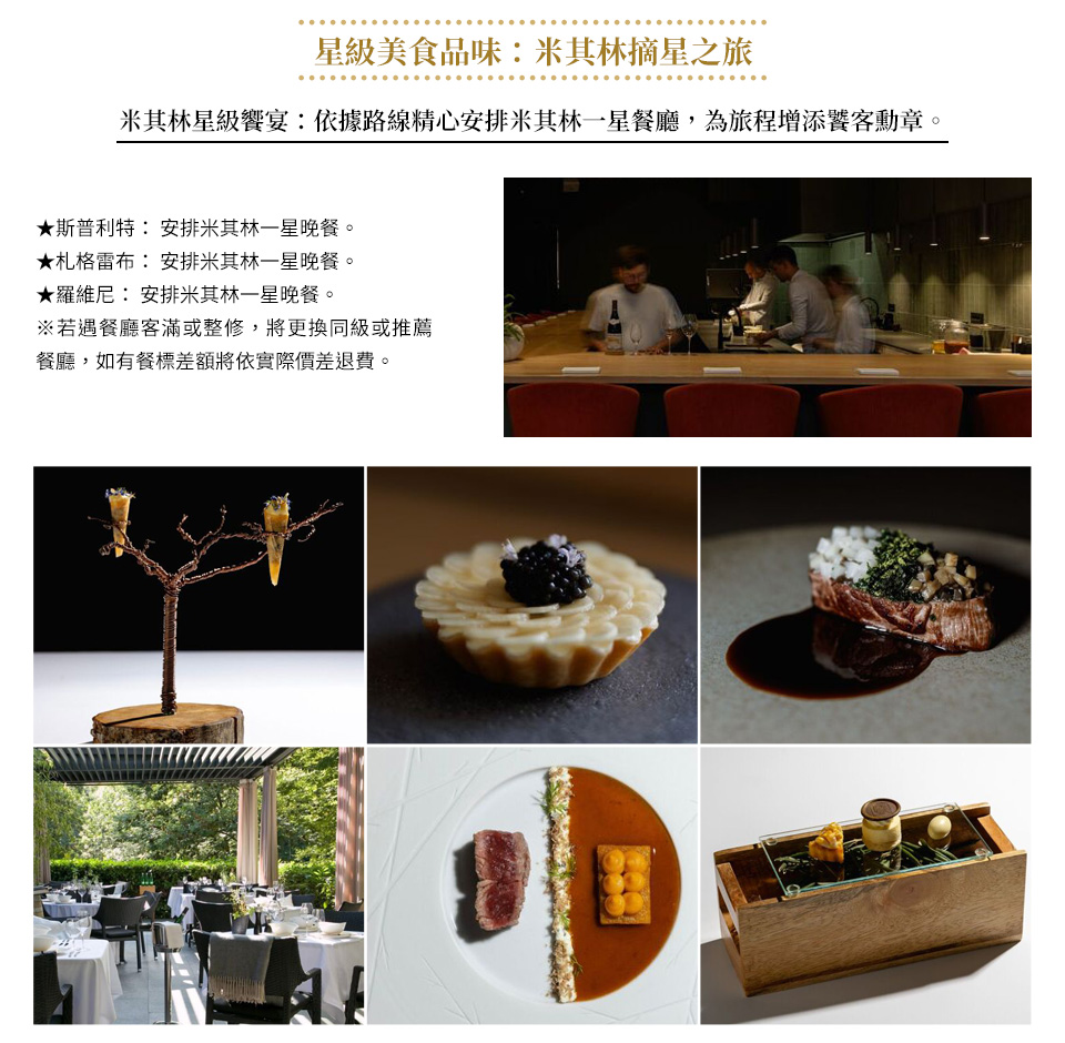 我們深知您的旅行不僅追求美景,更追求味蕾體驗,此行程依路線安排米其林一星餐廳,為您的米其林摘星之旅再增添幾顆饕客勳章。
