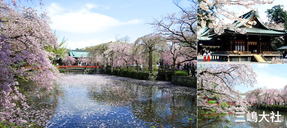 三嶋大社是伊豆著名的神社,每到春天園區的枝垂櫻、染井吉野櫻、三島櫻、大島櫻、八重櫻,總計200株櫻花陸續綻放,置身櫻花海中彷彿踏入仙界不似在人間。