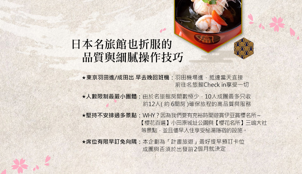 伊豆秘湯隱宿名旅館‧櫻花饗宴‧演歌天王演唱會5日【十人成行】