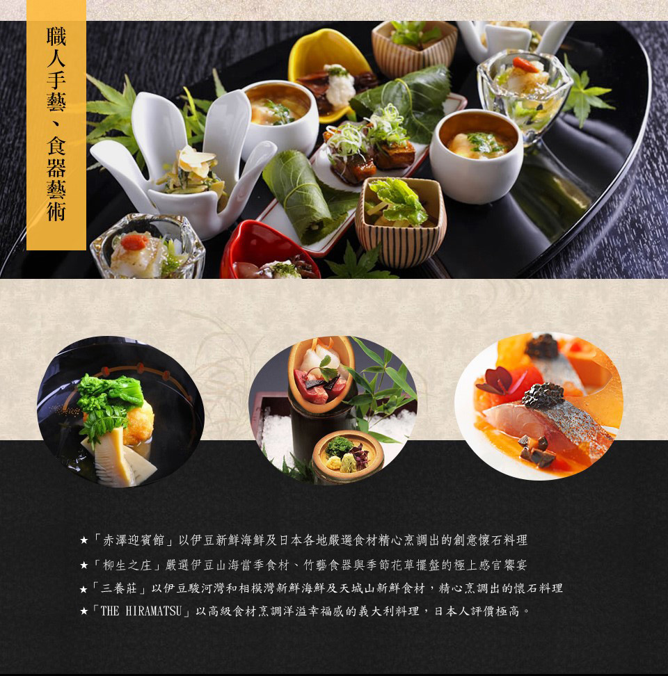 在「旅館即景點」的旅遊年代,「名旅館」結合建築、園林、設計、美食、藝術、養生於一爐,在不同的國度、不同的城市、不同的山水自然景觀裡,綻放自成一格的美學體驗,博得您的青睞。這次我們一起體驗了伊豆‧箱根地區連日本人都很難訂到的名旅館,希望下次你我有緣結伴再去體驗不同風格的「名旅館」!