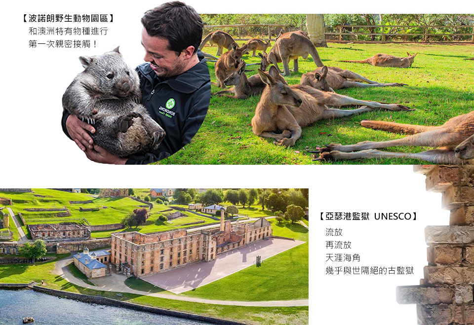 上午參觀★波諾朗野生動物園區(Bonorong wildlife sanctuary),與小惡魔袋獾相見歡,和袋熊、無尾熊等好朋友一起同樂。餘興節目是餵食袋鼠,請貴賓小心別讓袋鼠把您手中的好料搶走!
