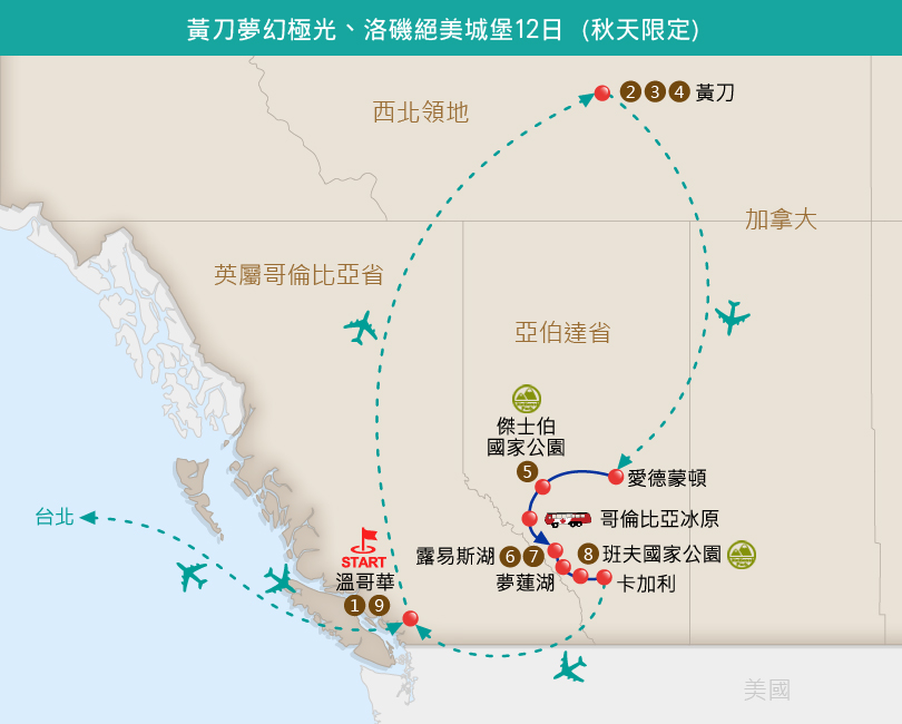 黃刀夢幻極光12日(保證入住露易斯湖城堡2晚)