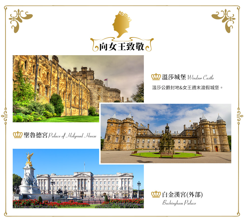 今天我們將從車窗瀏覽英國首都倫敦,欣賞英國皇室輝煌燦爛的容顏~西敏寺、英國國會大廈、海德公園、唐寧街10號首相官邸等等,還將參觀●白金漢宮周邊,運氣好的話有機會看到不定期舉行的宮前御林軍交接儀式!