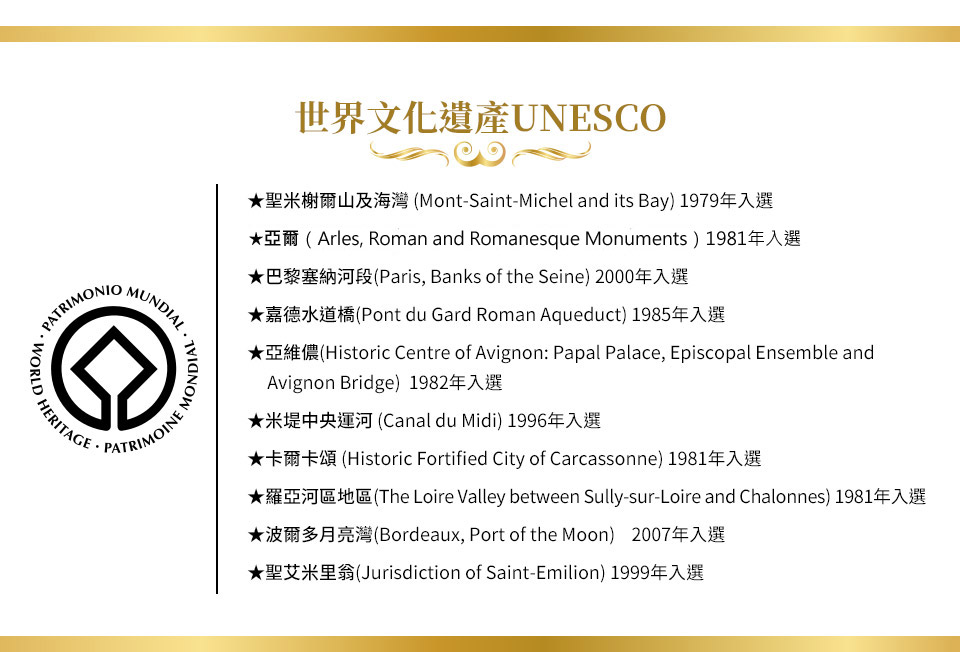 ◎Saint-Emilion (1999)UNSCO世界文化遺產波爾多最大的優質產區,有一萬三千公頃 (最大的波爾多產區則是美杜區) ,波爾多右岸的酒區不太多,出產優質酒的產區只有兩個:聖艾米里翁(Saint-Emillion)和龐美(Pomerol)。聖艾米里翁的酒:口味較重、韻味深厚,特別適合亞洲人的口味。