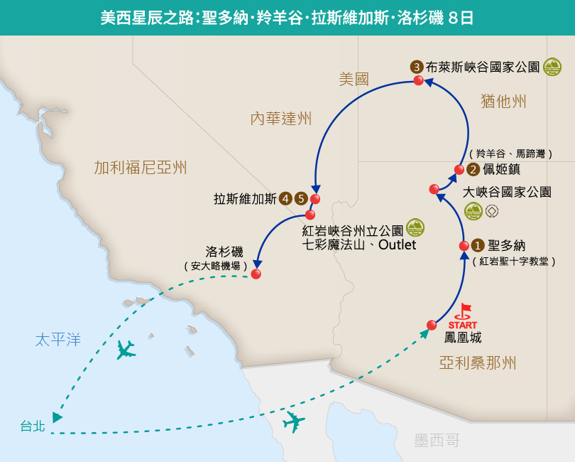 美西星辰之路:聖多納・羚羊谷・拉斯維加斯・洛杉磯 8 日