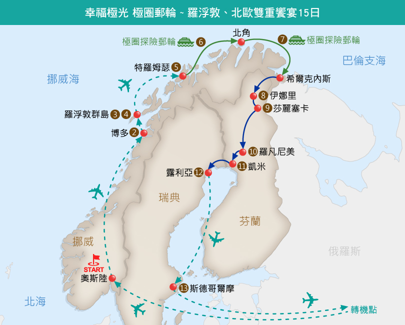 幸福極光 極圈郵輪 ~ 羅浮敦、北歐雙重饗宴15日