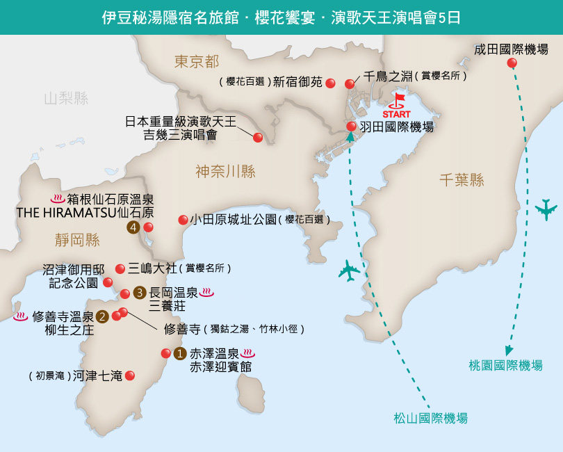伊豆秘湯隱宿名旅館‧櫻花饗宴‧演歌天王演唱會5日【十人成行】