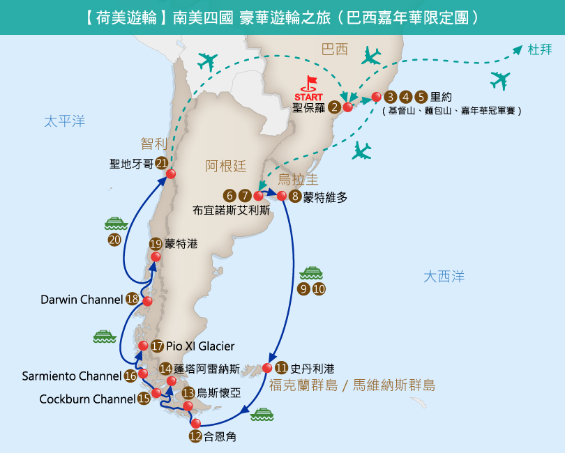 【荷美遊輪】南美四國.巴西嘉年華盛會24日(EK)