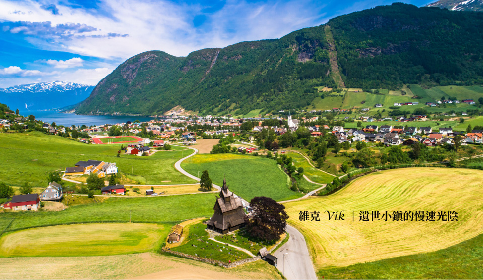 在千年教堂與山巒牧場之間 〜品味挪威的靜謐日常 座落於挪威松恩峽灣南岸,維克是個寧靜而富有歷史感的小鎮,四周環繞著壯闊山巒與碧藍峽灣,構成一幅宛如北歐童話的山水畫卷。這裡保有純樸的鄉村生活節奏,同時也是探索挪威古老宗教與建築文化的重要據點。