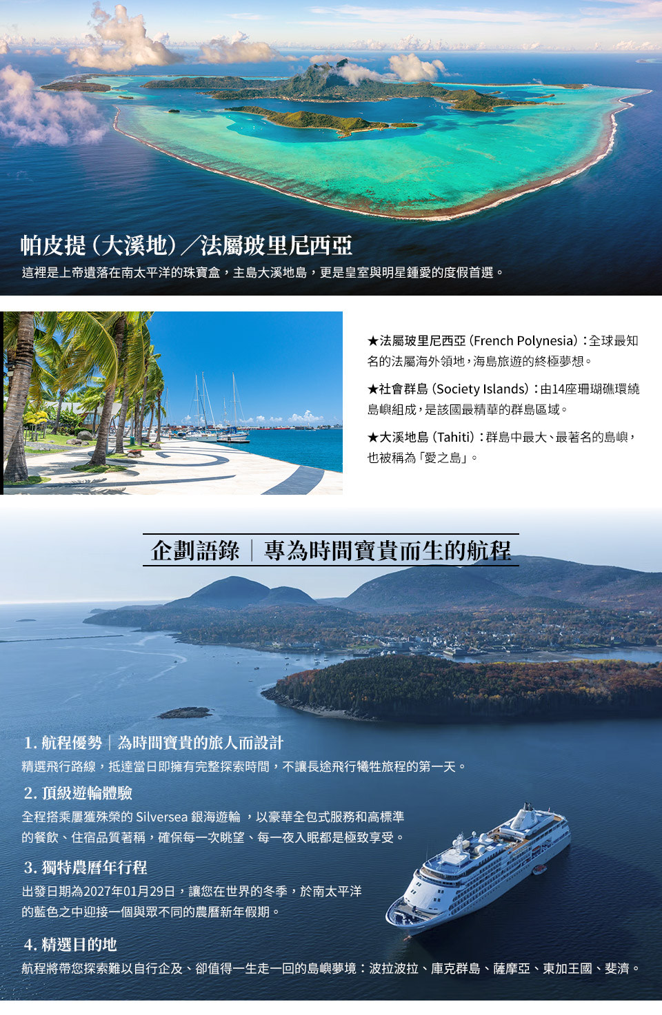 銀海遊輪・南太平洋玻里尼西亞、庫克群島、斐濟巡航17日